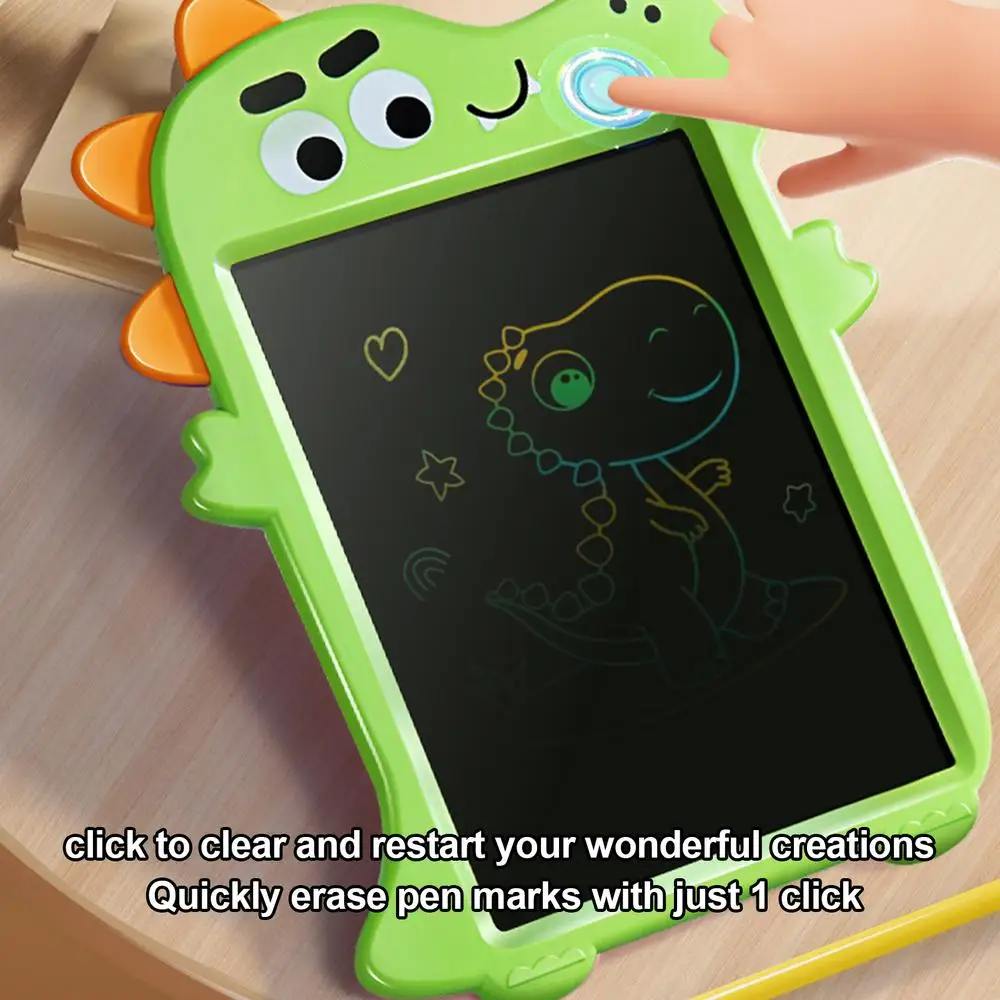 Let your child's imagination run wild with kids doodle board! Featuring a fun dinosaur appearance, equipped with 1 button clear function, children can create anytime and anywhere. Cultivating aesthetic sense and hand-eye coordination ability has never been easier. Safe to use, let your child's creativity fly with doodle board.